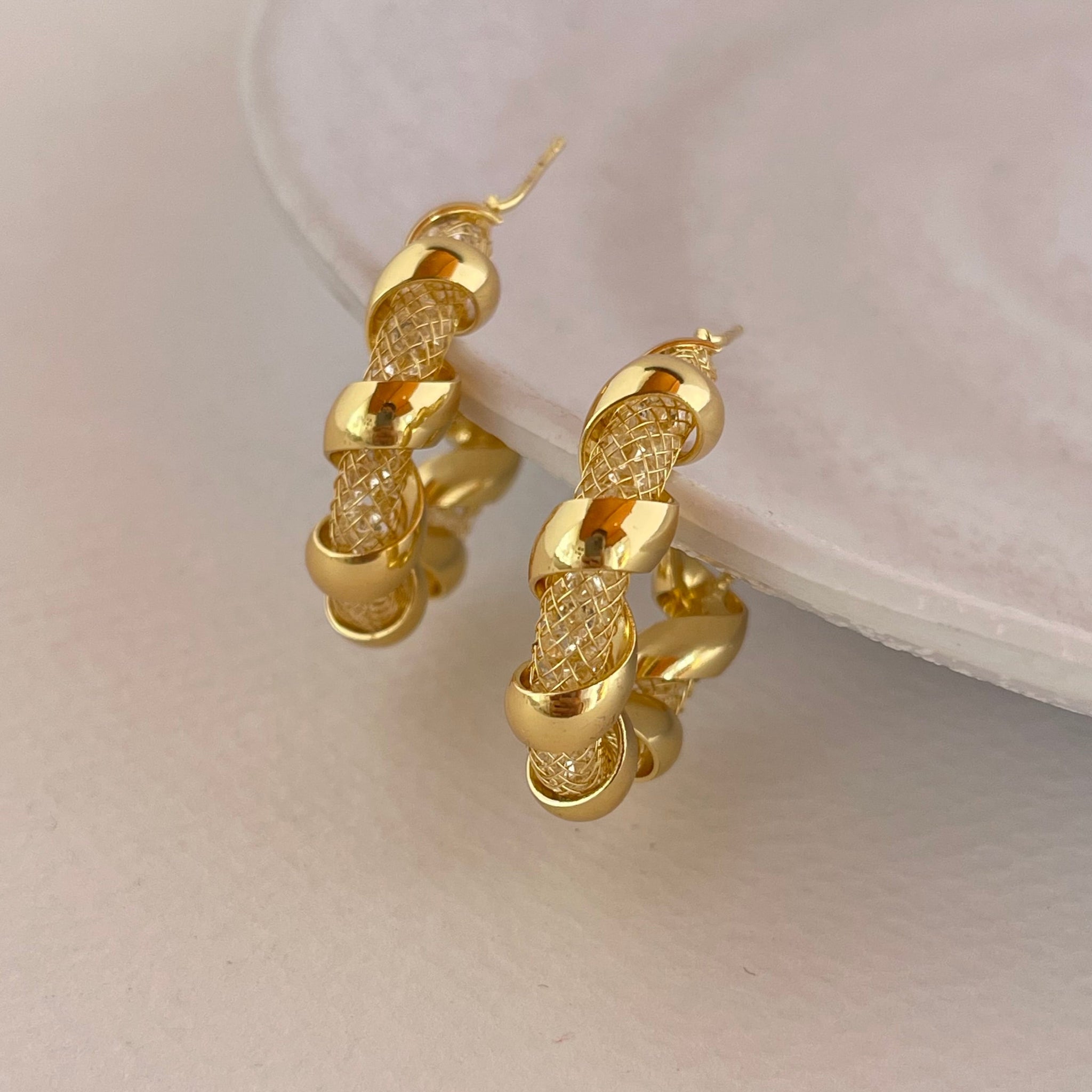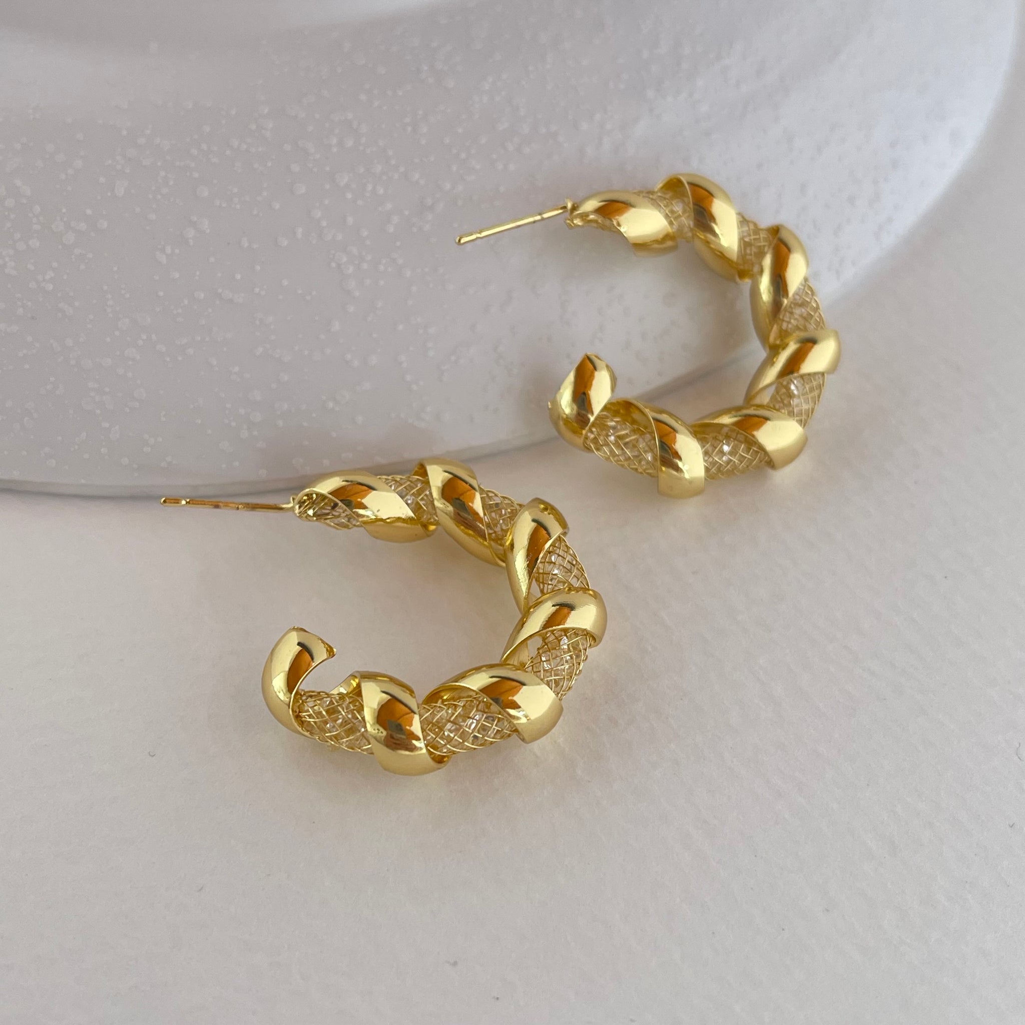 Candongas entorchadas en aleación de metales con baño en rodio color dorado.