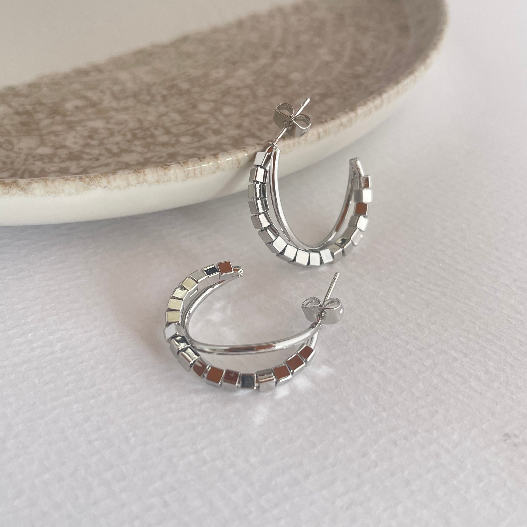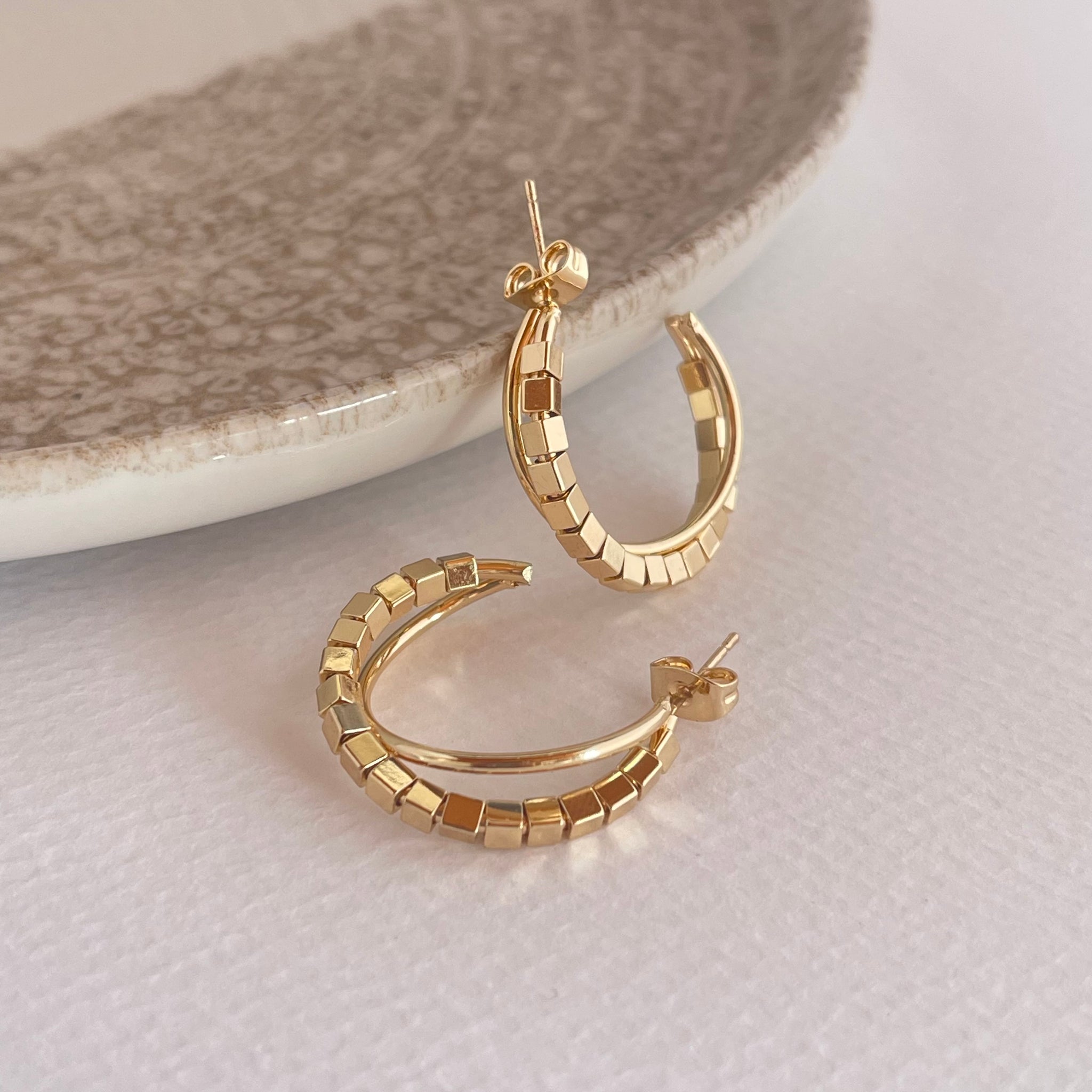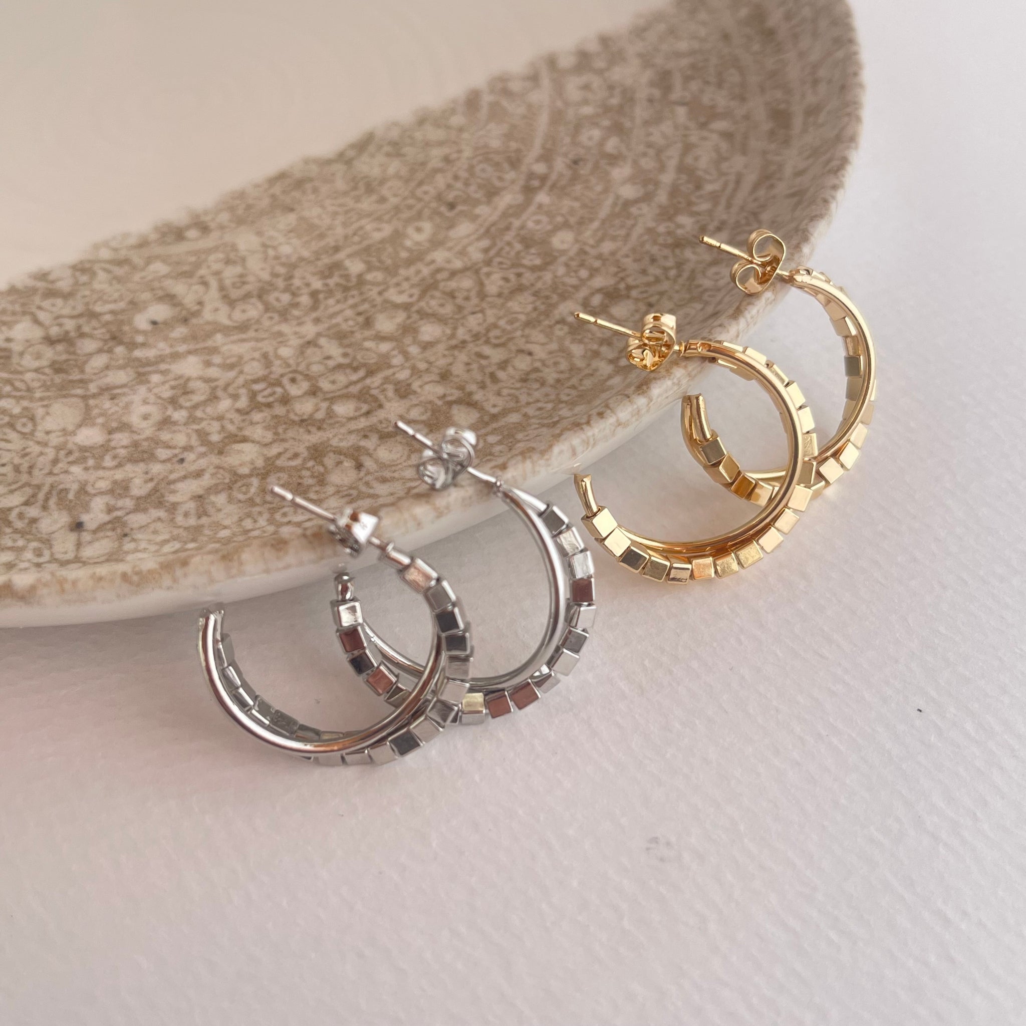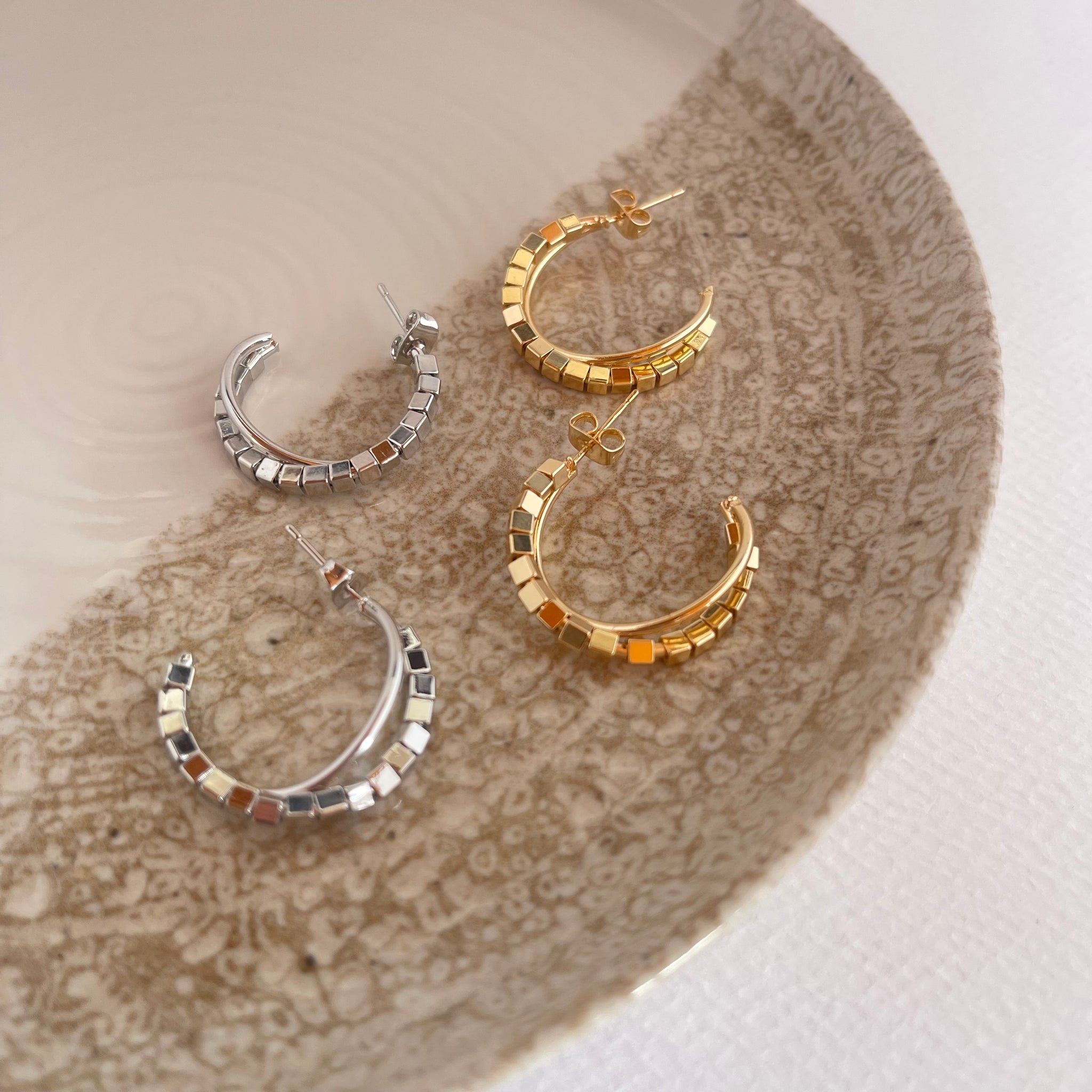 Candongas en aleación de metales con baño en rodio color dorado y plateado