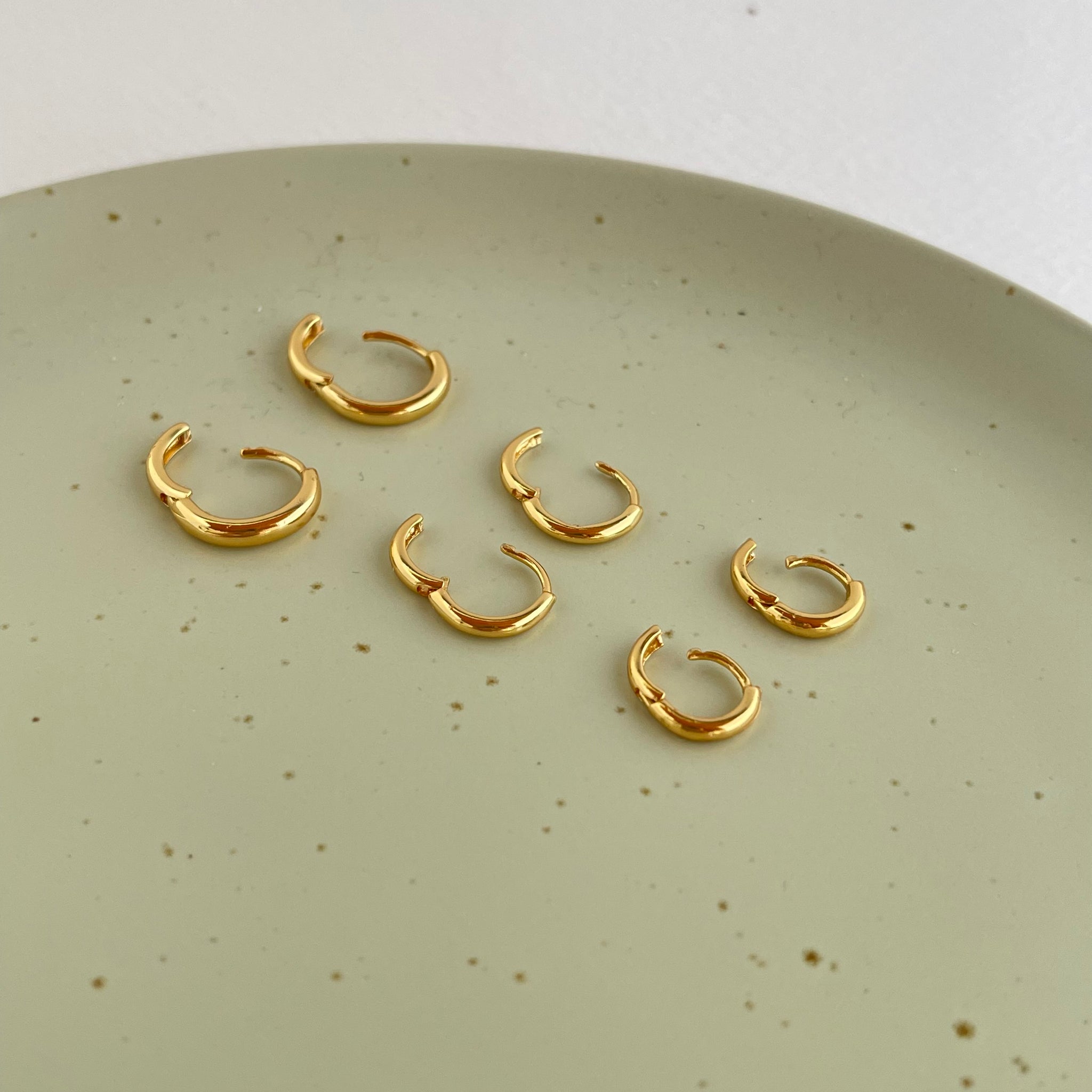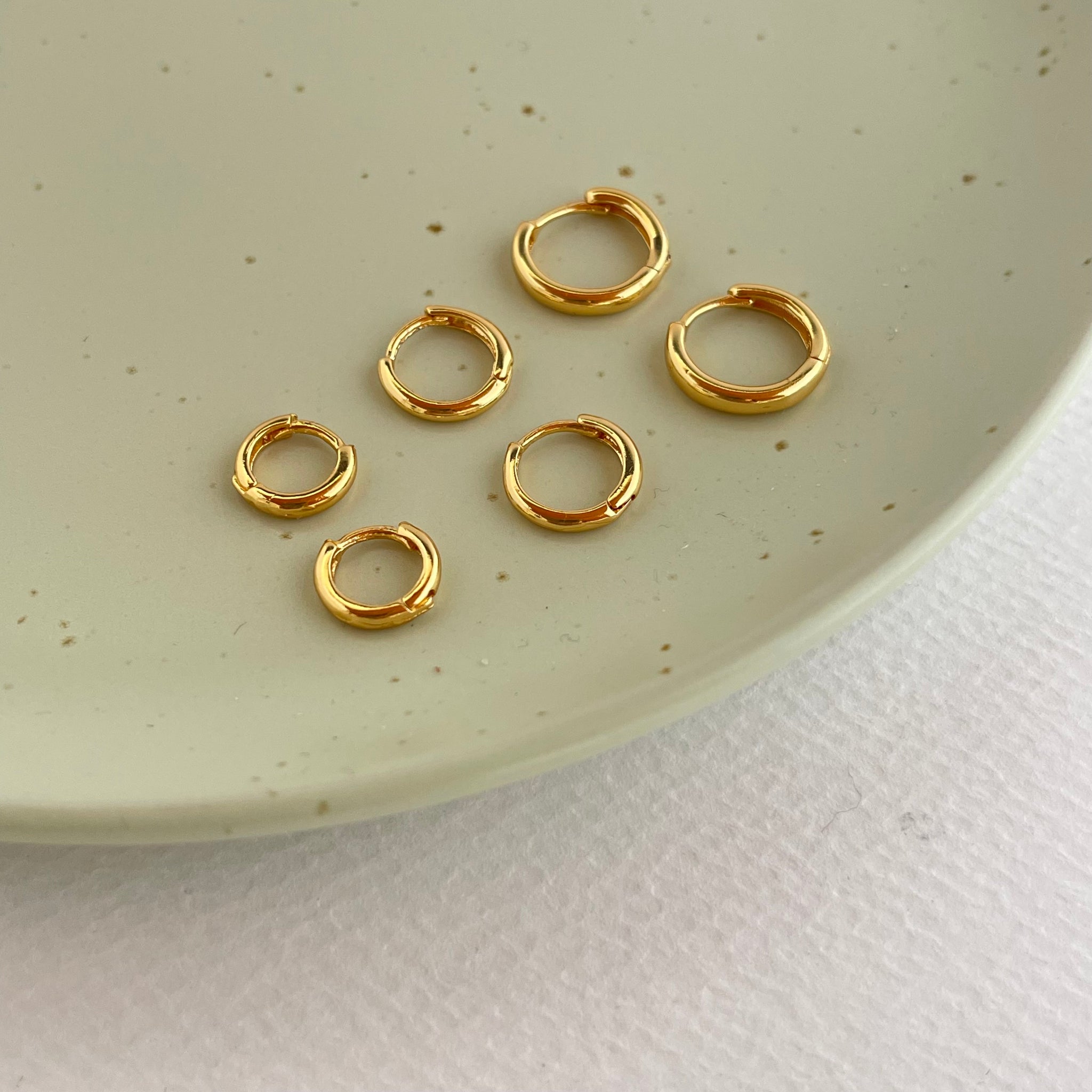Set 3 Candongas pequeñas en aleación de metales con baño en rodio dorados