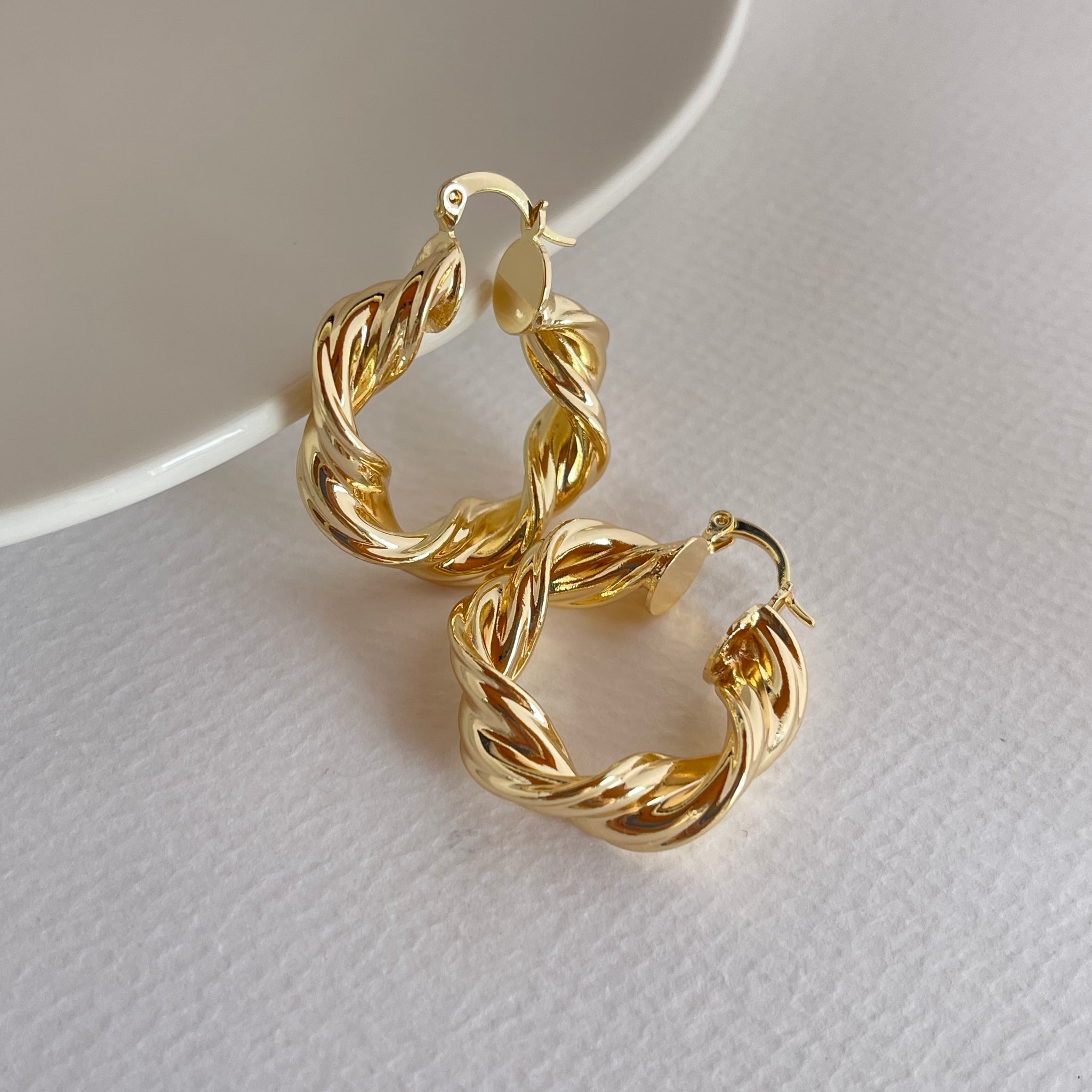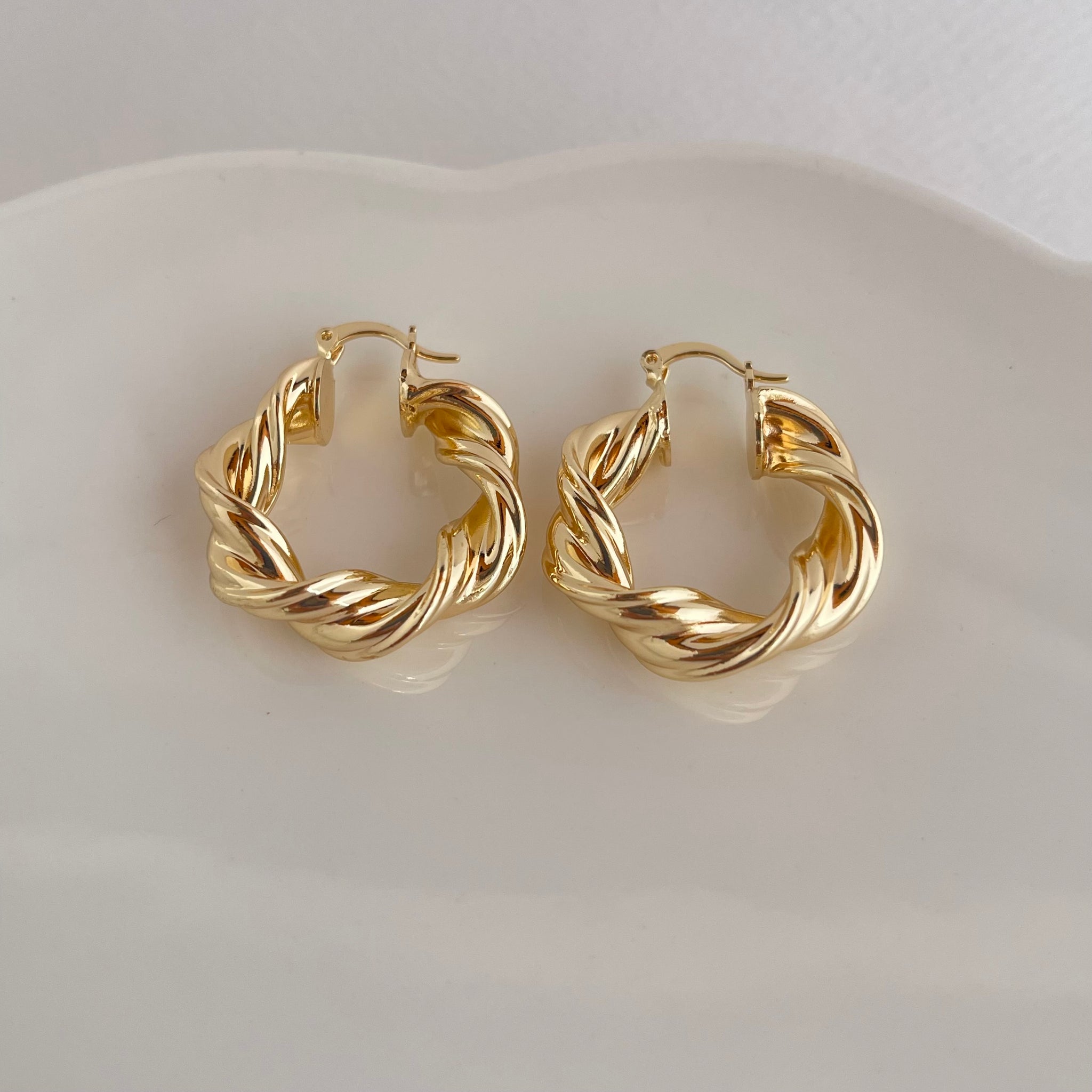Candongas entorchadas en aleación de metales con baño en oro color dorado.