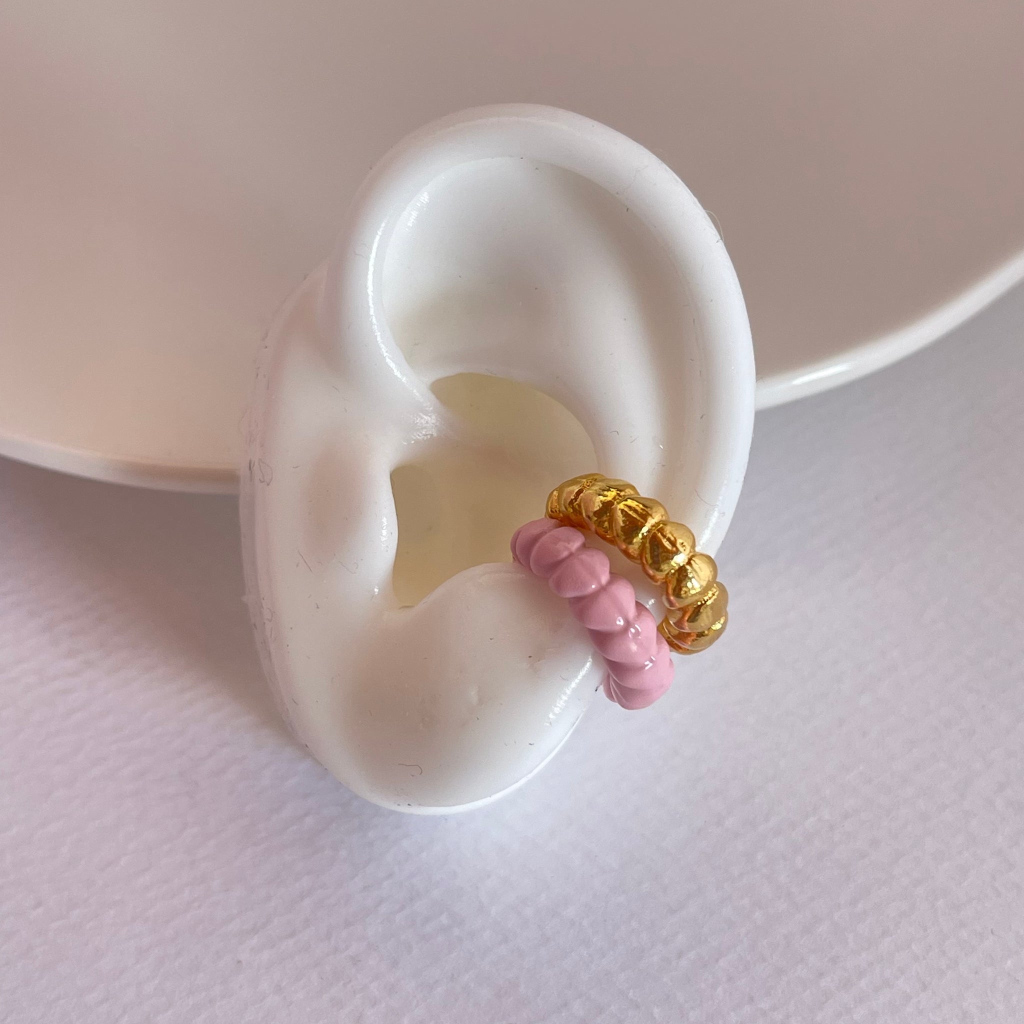 2 Earcuffs en zamak (aleación de metales) color dorado y rosa .